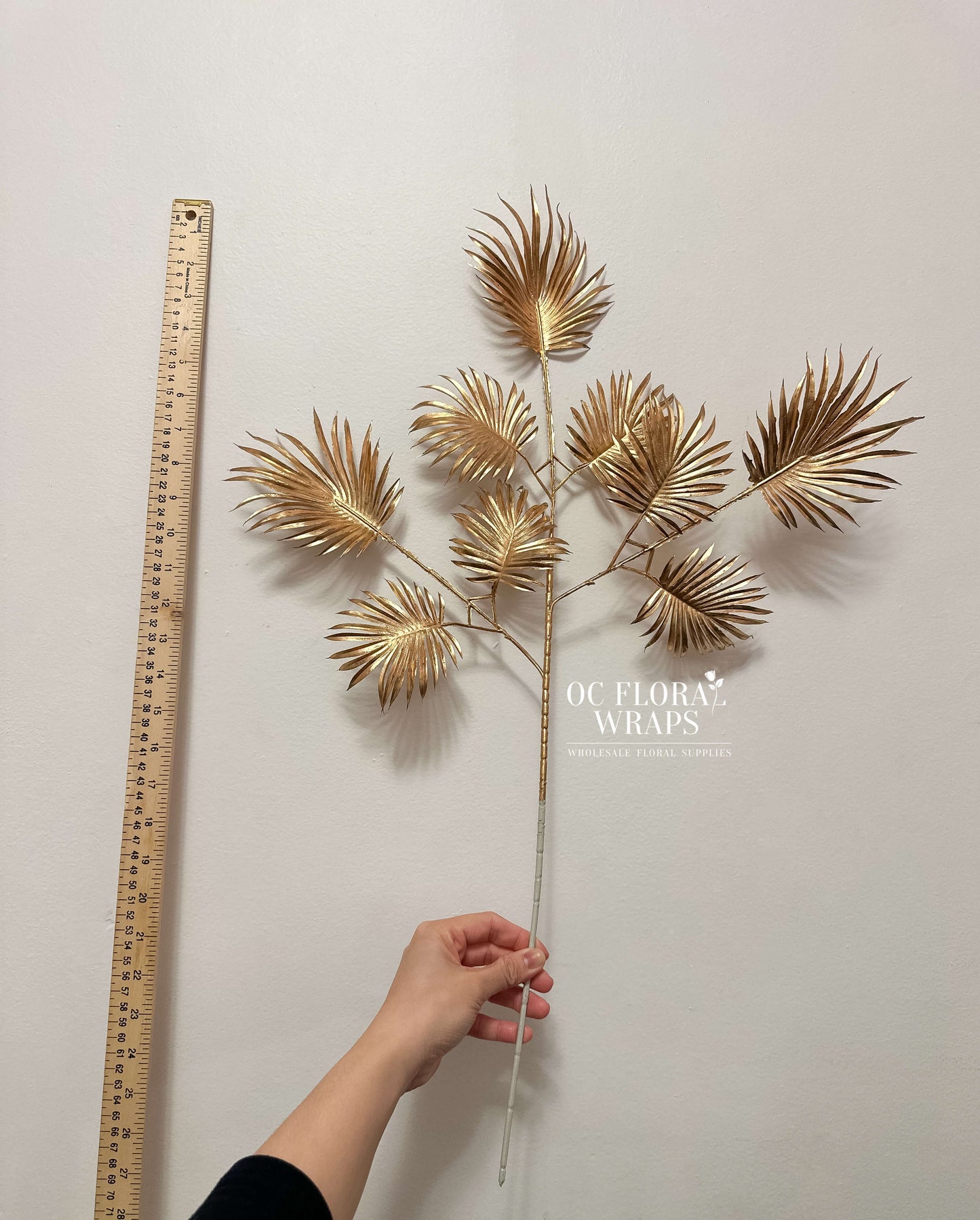 Faux Gold 3 Branches Palm Leaves, 1 Stem 26in