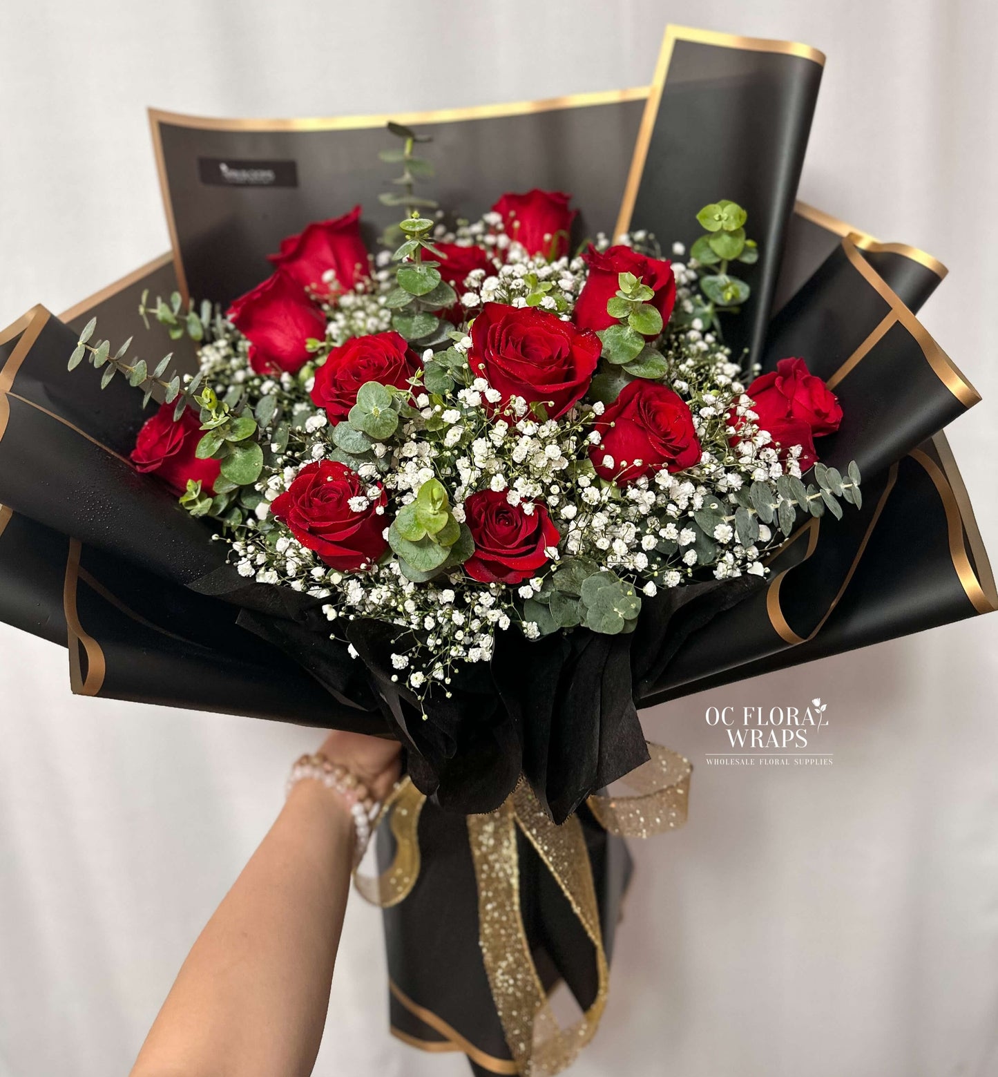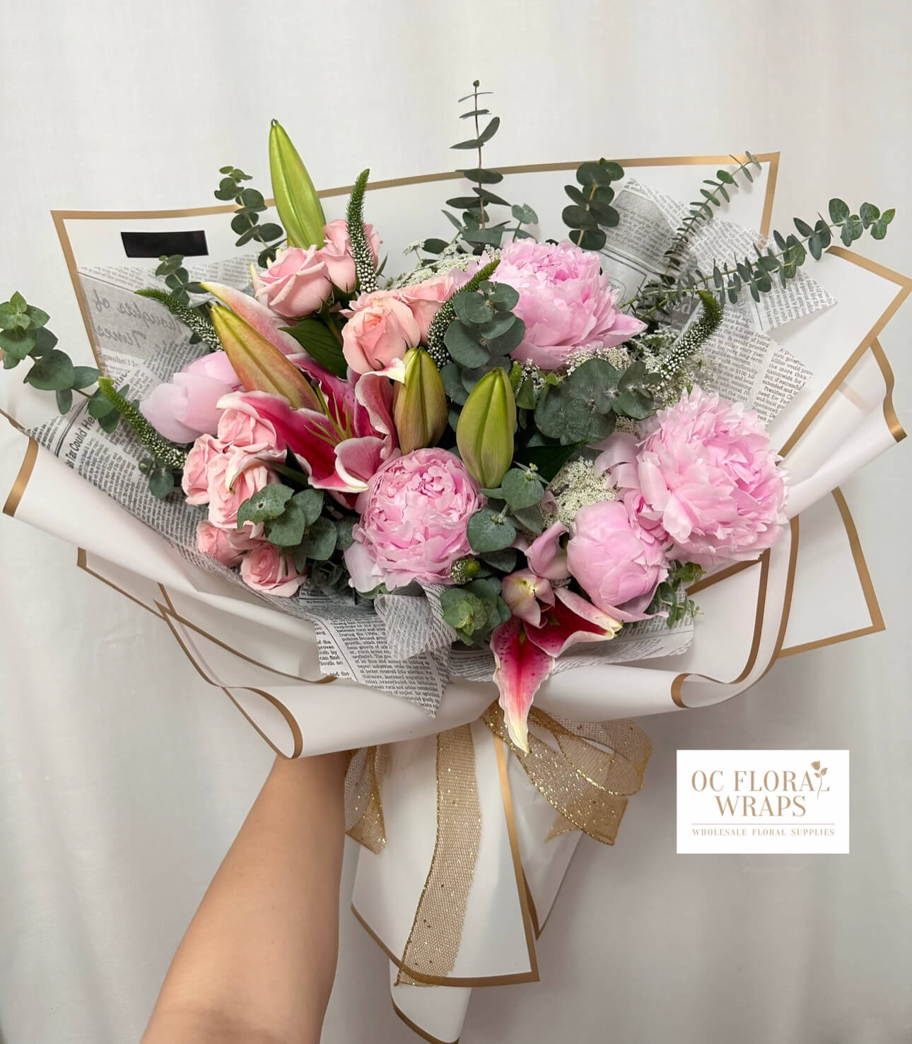 Gold Edge Waterproof Flower Wrapping Paper, 20Sheets/Bag