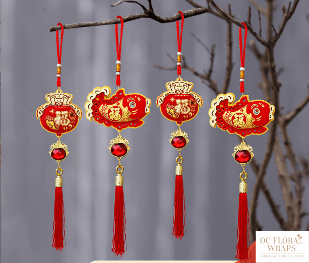 Lucky New Year Tassels With Ruby Charm Ornament, 1 Piece