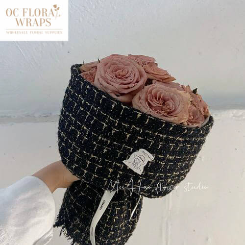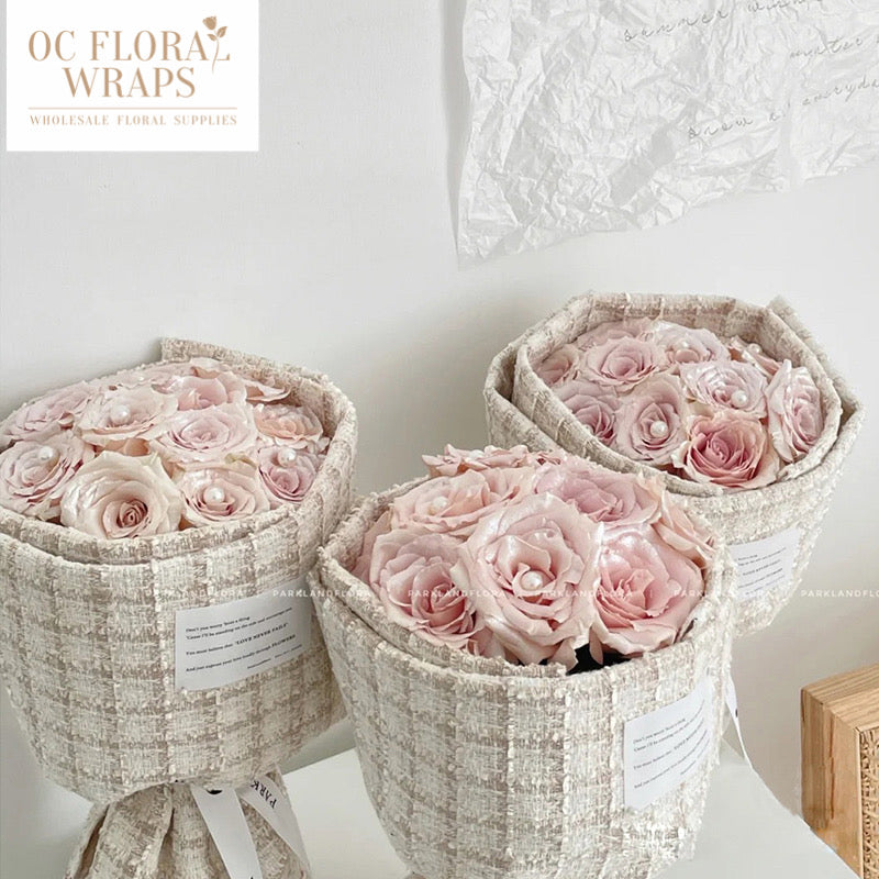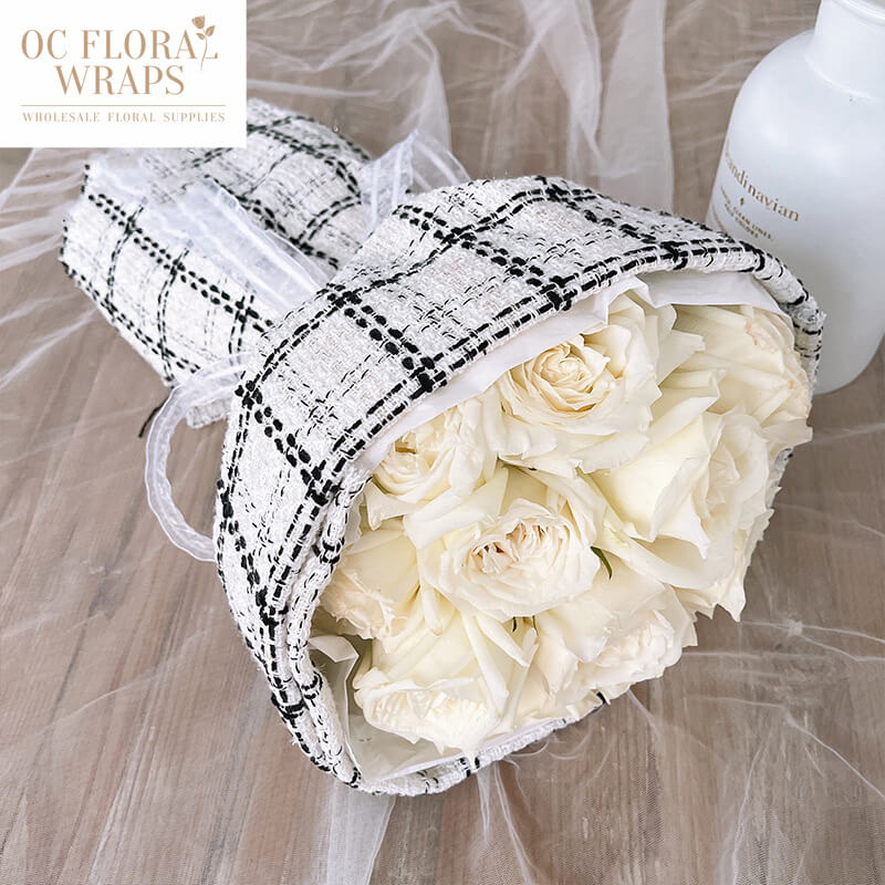 Square Pattern Fabric Flower Bouquet Wrapping, 1 Roll 5ft